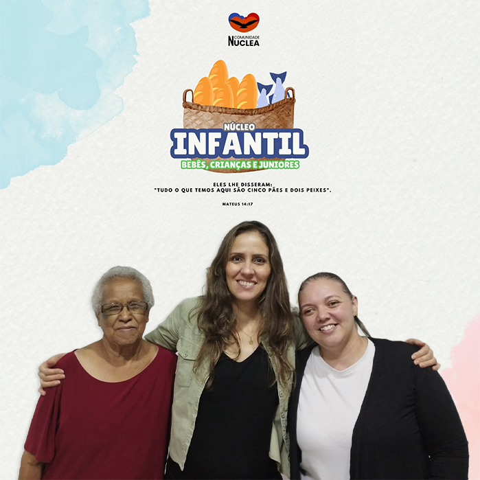 O Núcleo infantil da Comunidade Nuclea abrange os bebês, as crianças, desde a primeira infância e os pré-adolescentes também conhecidos como juniores.